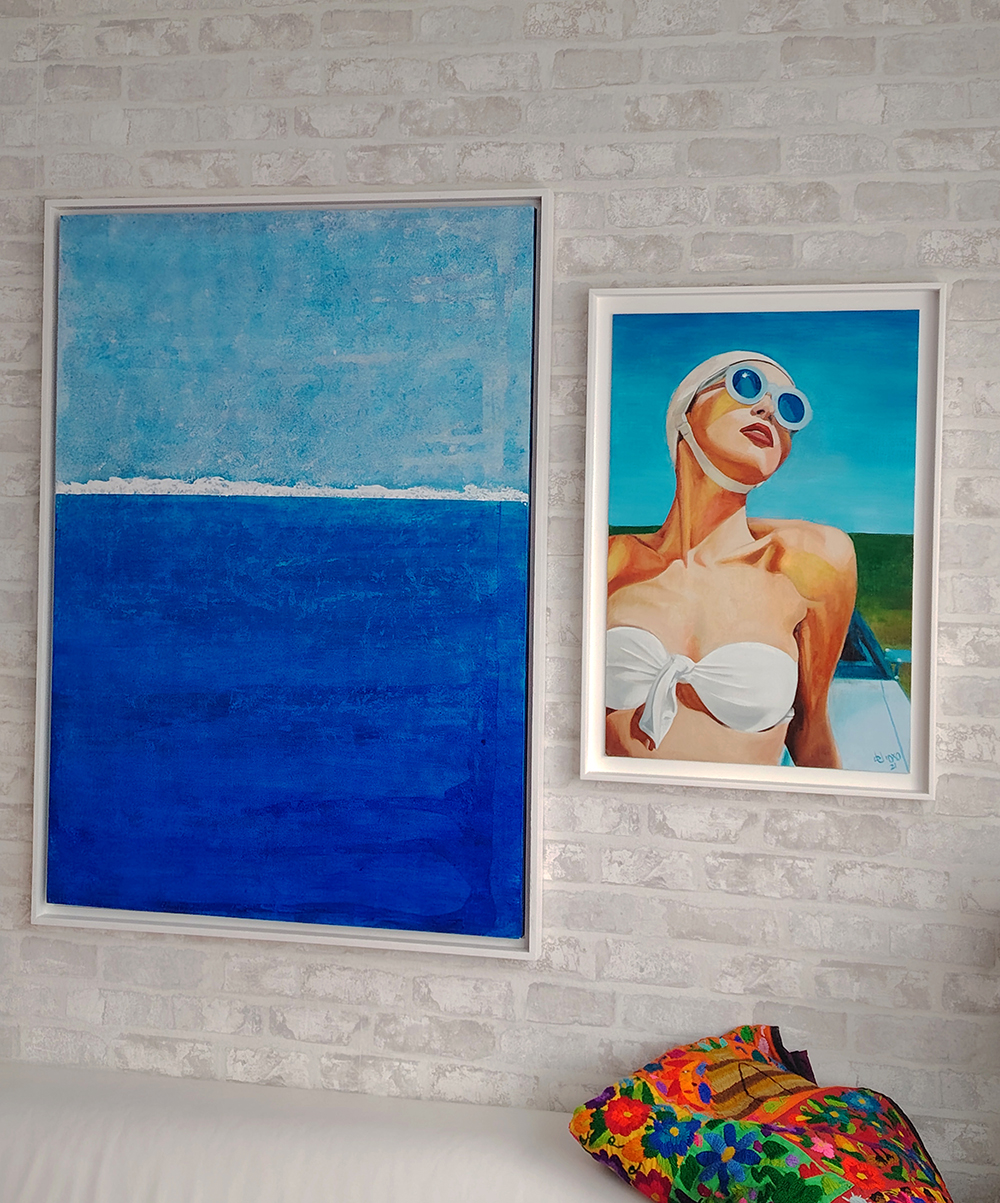 Nací junto al Cantábrico, un día de mareas vivas. Llevo en la piel el olor a salitre y algas. Uno de mis mayores placeres es pasear descalza por la arena mojada, por la frontera difusa entre la playa y el agua. El mar está presente en mi nombre y en mi vida. Y cuando estoy lejos, lo sigo teniendo dentro. Y cuando no lo veo, lo sueño, lo invento y, en ocasiones, lo pinto.