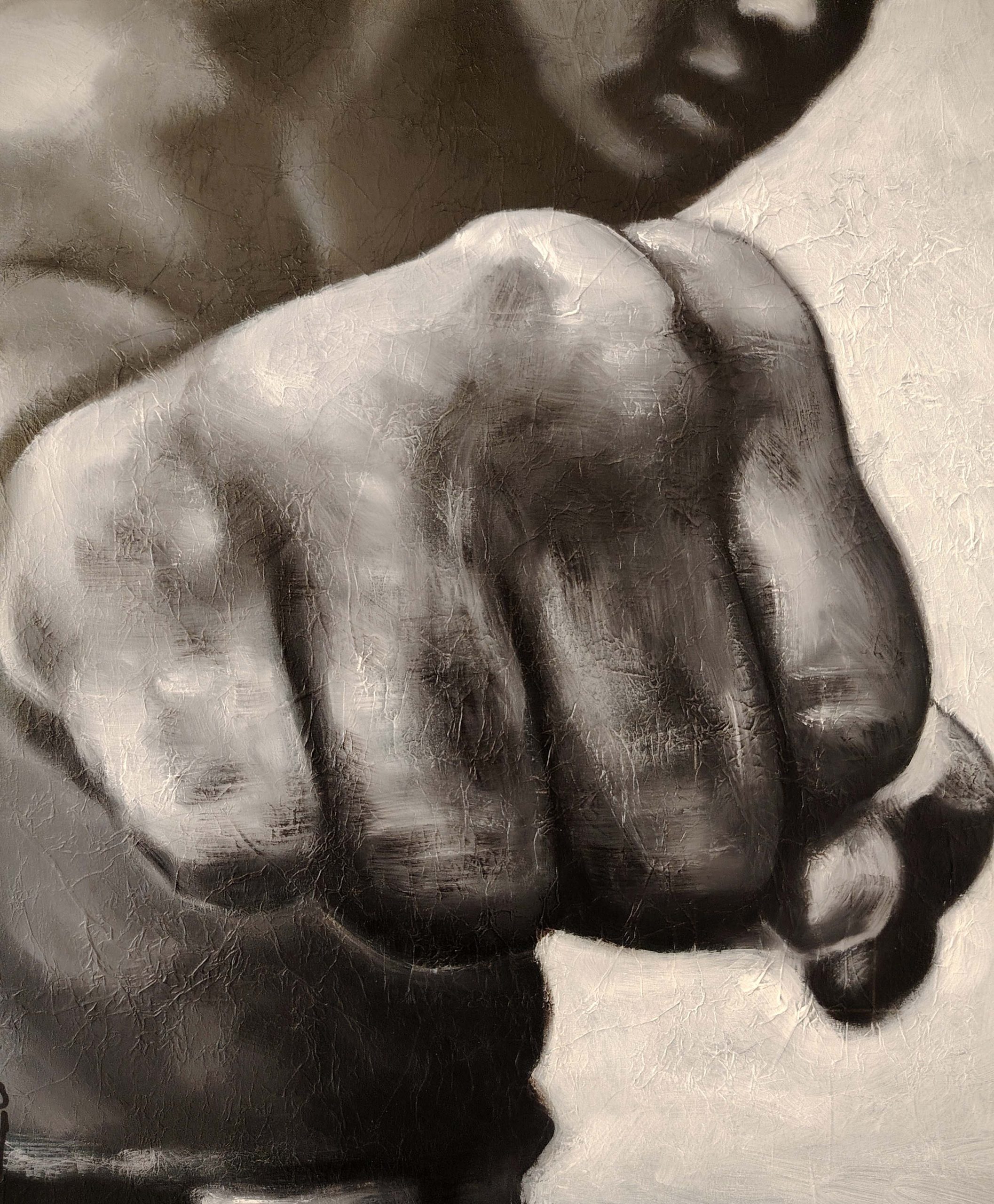 Obra inspirada en la cita de Muhammad Ali, boxeador profesional y activista de los derechos humanos, que decía que la voluntad tiene que ser más fuerte que la habilidad * This piece has been inspired by American’s boxer and activist Muhammad Ali’s quote: The will must be stronger that the skill».