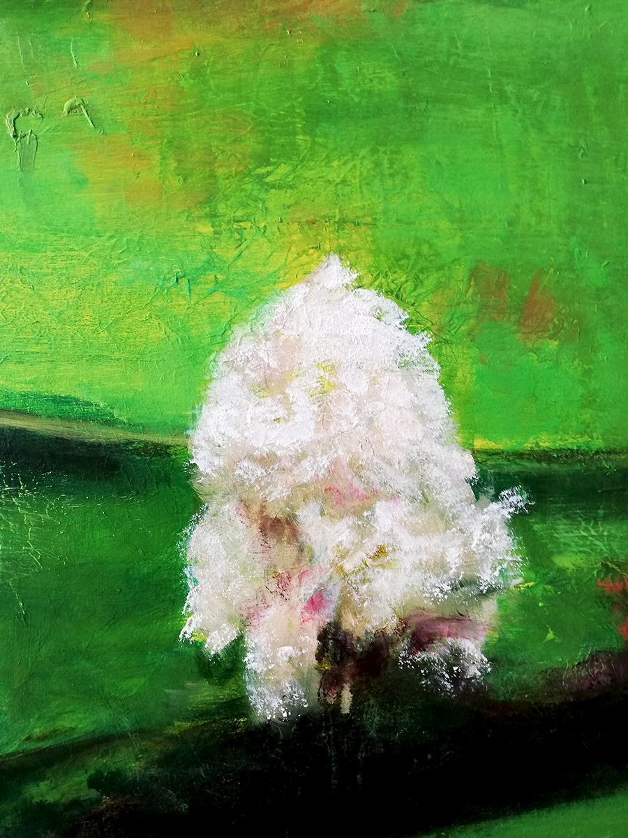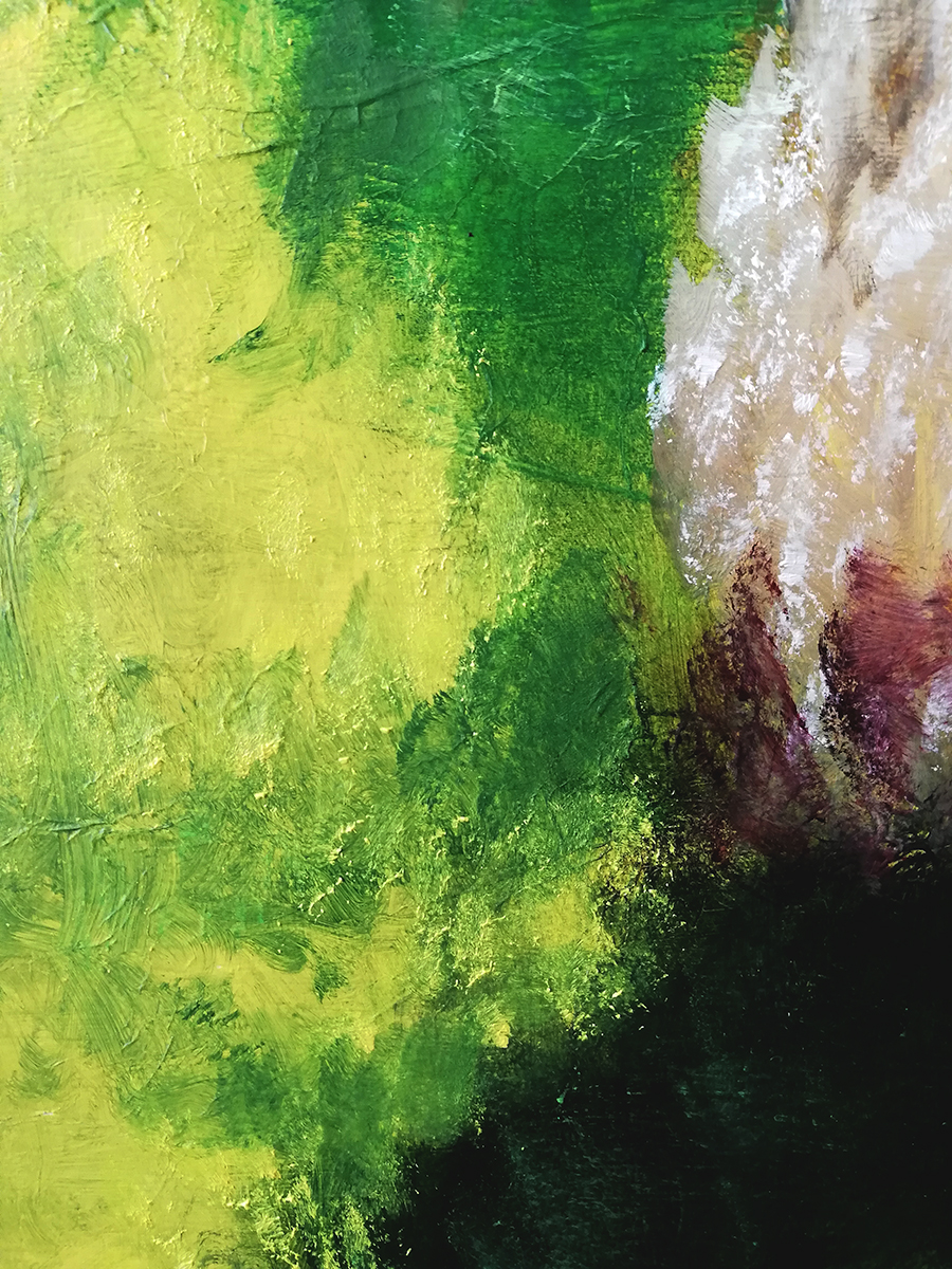Hay algo en este paisaje que hechiza y cautiva. Puede ser la composición a base de diagonales en un terreno pendiente de montaña. Puede ser la fuerza de los verdes y amarillos primaverales. Puede ser esa energía que transmite. Lo cierto es que enamora a primera, segunda y tercera vista. El autor de la fotografía sobre la que me he basado es el fotoperiodista Miki López. El cuadro está realizado con técnicas mixtas sobre bastidor de madera texturizado. Grandecito, de un metro de alto x 70 cm de ancho, tiene asegurado el protagonismo en cualquier ubicación posible.