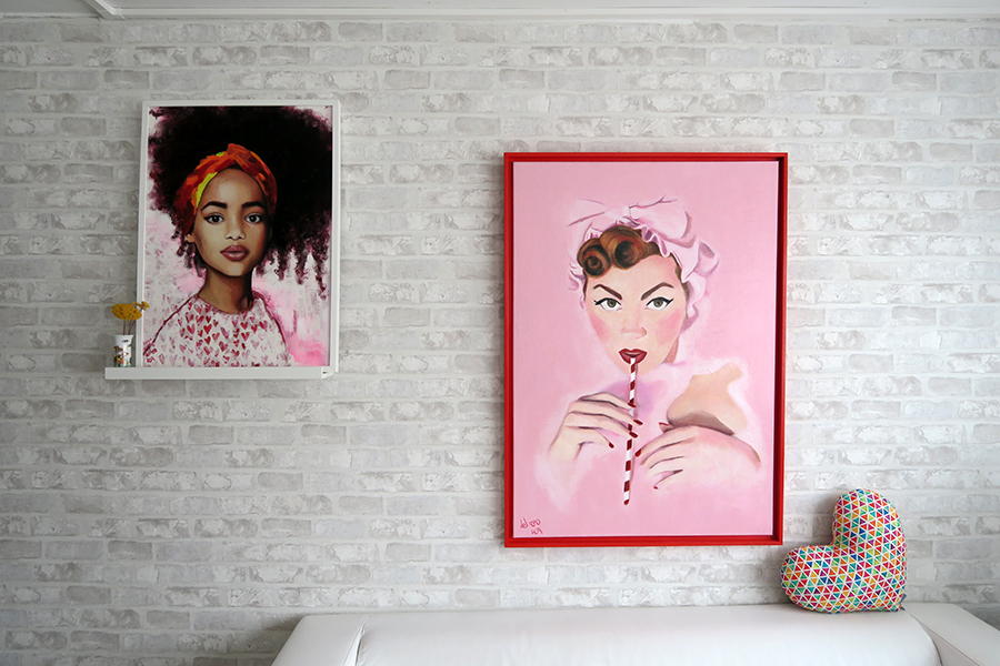 Pintura realizada con una combinación de técnicas para conseguir esa textura tan especial. Collage, acrílico y óleo sobre una tabla texturizada. Los colores son atrevidos y desafiantes, pero la combinación con los corazones y la inocencia de la mirada de la modelo consiguen crear un efecto de energía controlada. Un cuadro, a mi modo de ver, ideal para una habitación infantil o para cualquier rincón al que desees imprimir un toque de energía positiva.